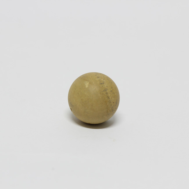 Pieza incompleta, con leves faltantes en la superficie. Es de forma esférica, simétrica. La superficie está pulida y tiene un color marrón claro con resto de una franja de color negro.