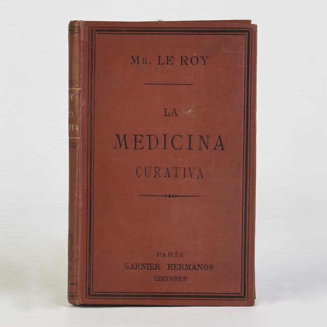 Libro de formato rectangular, compuesto por un conjunto de hojas con textos regulares, encuadernadas mediante un lomo. Presenta cubiertas rígidas, donde se lee el título: “La medicina curativa".