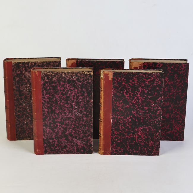 Libros de formato rectangular, compuestos por conjuntos de hojas con textos regulares, dispuestas en conjunto y unidas mediante encuadernación en lomo.