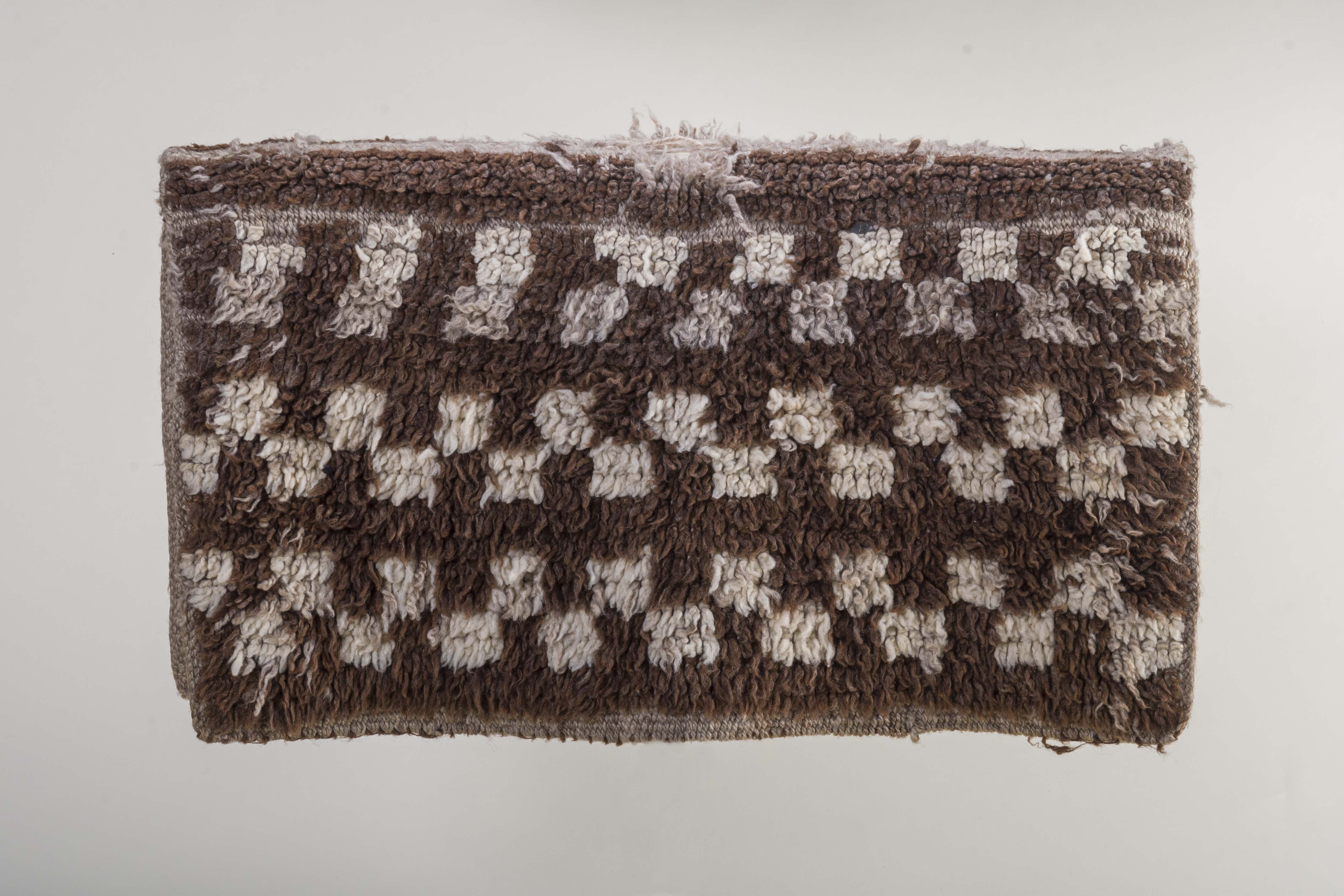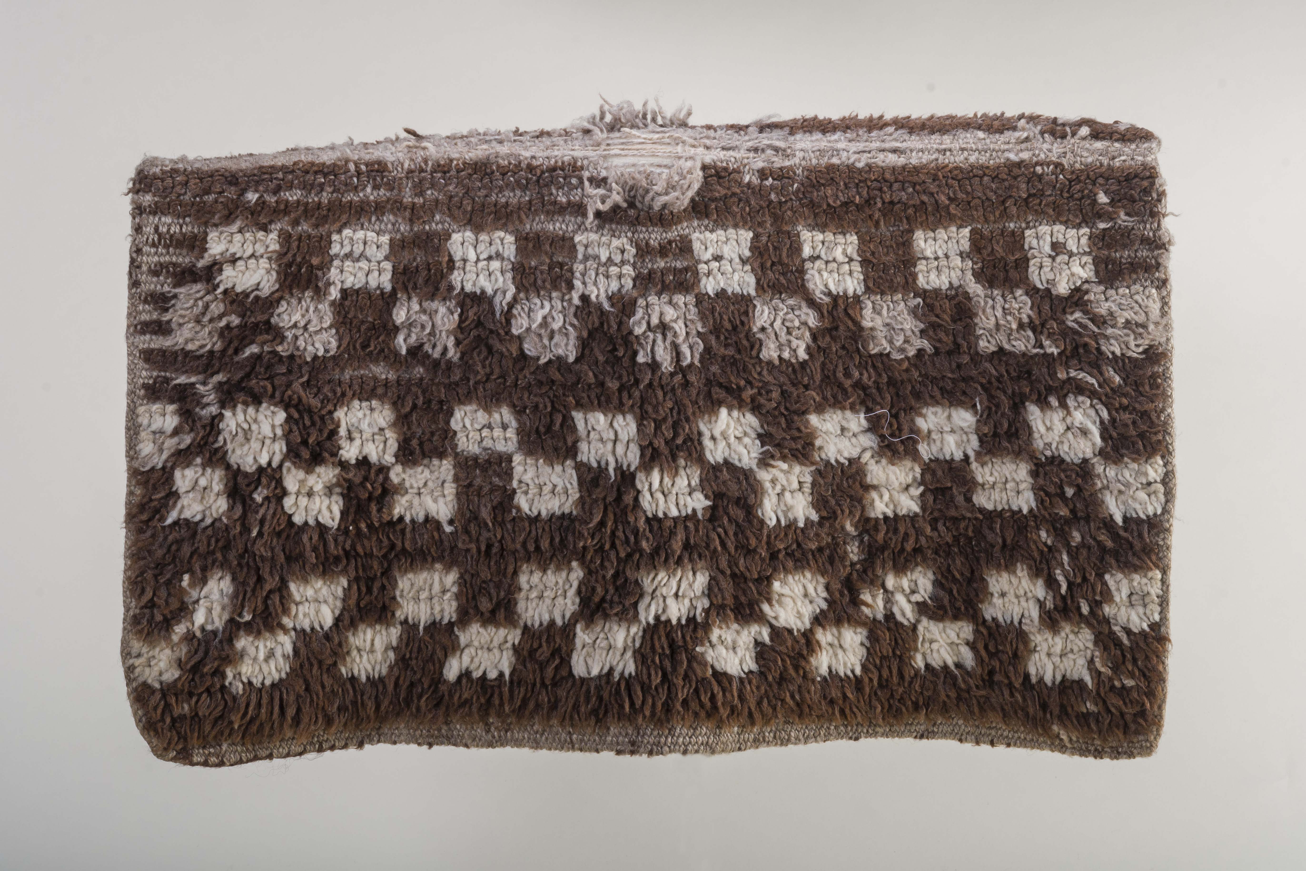 Textil de uso ecuestre, utilizado originalmente sobre la montura Mapuche. De forma rectangular, ha sido confeccionado en telar con lana de oveja de colores crudo y café, siguiendo la técnica de nudo amarrado.
