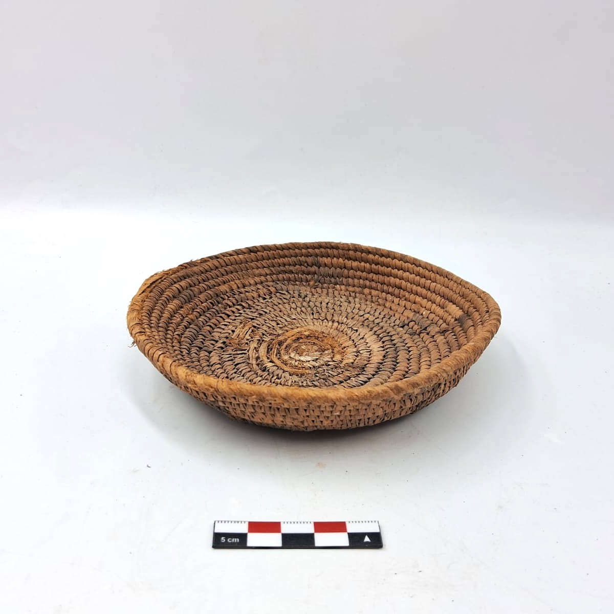 Prado (2000) establece que la cestería presenta expresiones tanto precerámicas como cerámicas en el Norte Grande de Chile, siendo identificada en el registro arqueológico desde el Arcaico Tardío. La técnica coiled o tejido en espiral se consolida durante el Período Formativo y se encuentra ampliamente difundida en el Período Intermedio Tardío, particularmente en el contexto de la cultura Arica. Los cestos bajos, como el ejemplar descrito, fueron comunes en este período; aquellos con motivos zoomorfos y elaborados en dos tipos de fibra vegetal café constituyen características propias del estilo San Miguel.