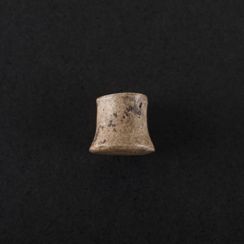 Objeto de uso personal utilizado como ornamento en las orejas. De forma hiperboloide con diámetros de sus extremos levemente distintos. Elaborado en arcilla, de superficie pulida de color marrón con incrustaciones negras.