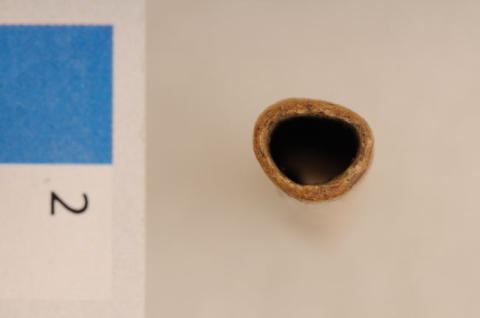 Instrumento de hueso de forma tubular regular, se sección circular con un extremo recto y otro cortado de forma irregular. Está elaborado en hueso tallado y pulido de color marrón claro.