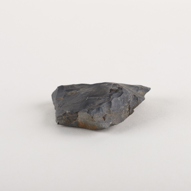 Conjunto de herramientas líticas consistente en cuatro piezas líticas con negativos de extracción y áreas con retoque. Piezas elaboradas en piedra de color negro.