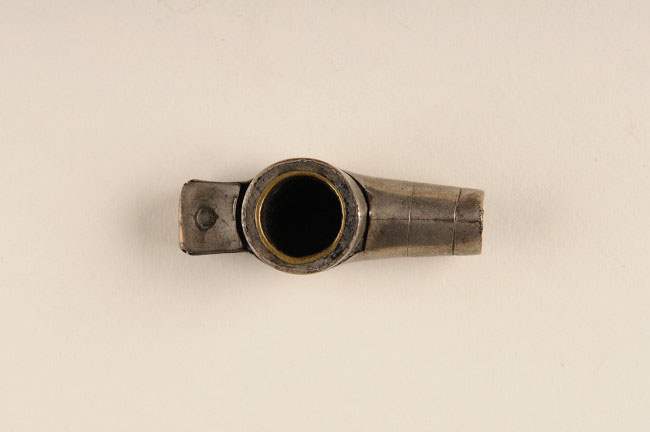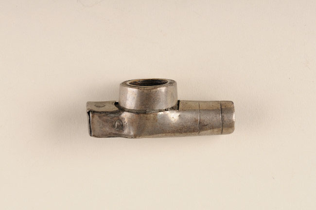 Objeto compuesto por una sección oblonga con un extremo cuadrangular y el otro cilíndrico, el cual se encuentra abierto, en la parte superior presenta hornillo completo de cuerpo troncocónico.