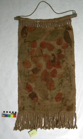 Tapiz para colgar, tejido con ligamento tafetán, de color crudo teñido con técnica "eco-print".