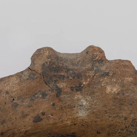 Vasija utilitaria simétrica de estructura restringida y de perfil inflectado. El cuerpo es de forma globular y el cuello hiperboloide. Es de borde evertido, labio redondeado y base plana. Tiene dos asas en arco de correa cada una decorada con dos protúberos en los bordes. El asa nace en el borde e inserta en la sección superior del cuerpo. La superficie es alisada y de color negro