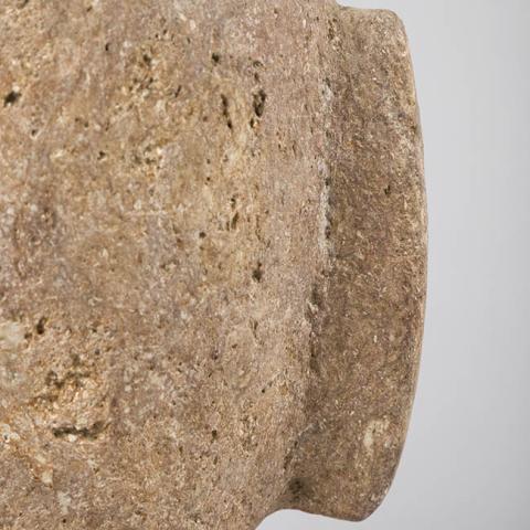 Pieza de color rosado, tipo “Pelequén”. Recipiente asimétrico campaniforme con un asa vertical. Se apoya en un pedestal de base circular. .Tiene una forma general tipo cáliz