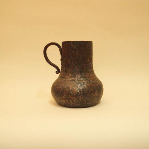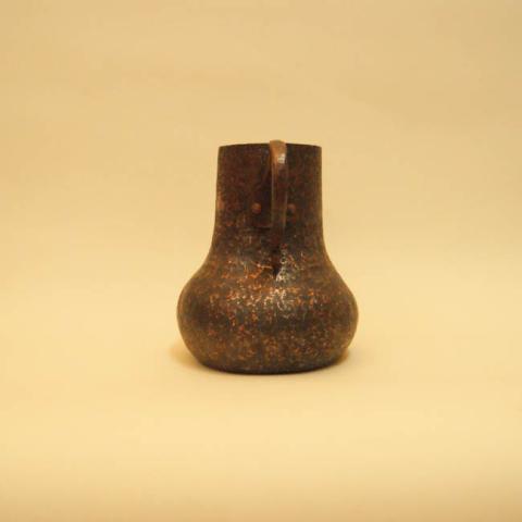 Objeto de uso doméstico, utilizado como contenedor de líquidos. Recipiente de cuerpo globular, cuello alto y asa.