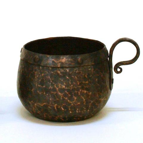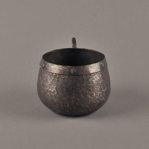 Objeto de uso doméstico, utensilio doméstico para cocinar. Recipiente con cuerpo de forma globular con un asa.