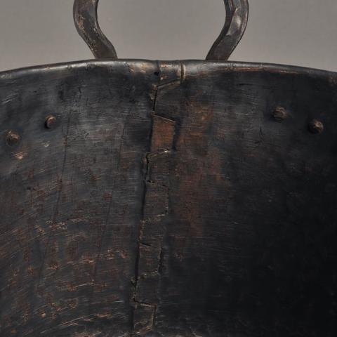Objeto de uso doméstico, de cuerpo globular de boca ancha abierta con dos asas curvas y borde liso con tachones por el rededor.