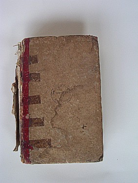Libro de forma rectangular de orientación vertical. Tapas de cartón de color marrón y lomo de cuero de color granate con letras y decoración doradas.
