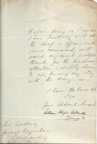Documento manuscrito en tinta negra sobre papel.Carta de William A. Acland al General Baquedadno, fechada en Lima en 18.... Escrito en inglés.