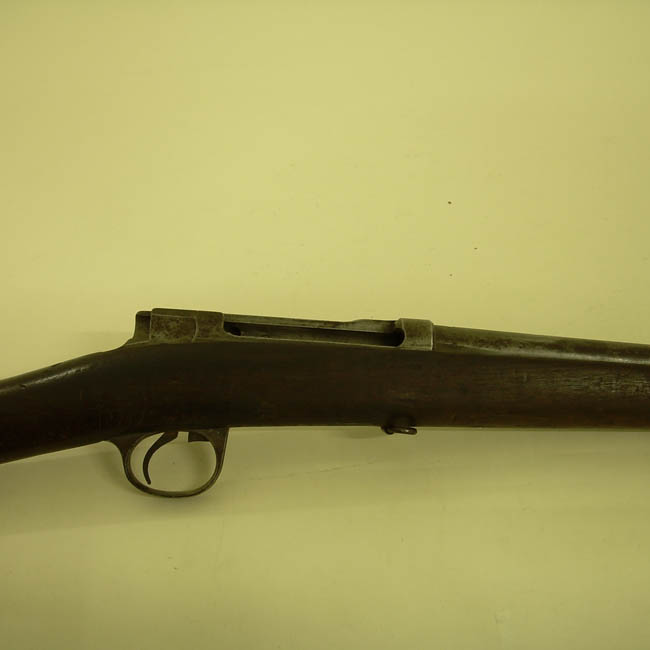 Arma de fuego portátil-larga, con sistema de retrocarga. Compuesta por caja, mecanismos y cañón. Caja de madera constituida por coz de acero, cureña de madera y caña rota con abrazadera unida al cañón y anilla bajo el cajón de mecanismo. Sin mecanismos, cañón recto de acero, con ánima estriada