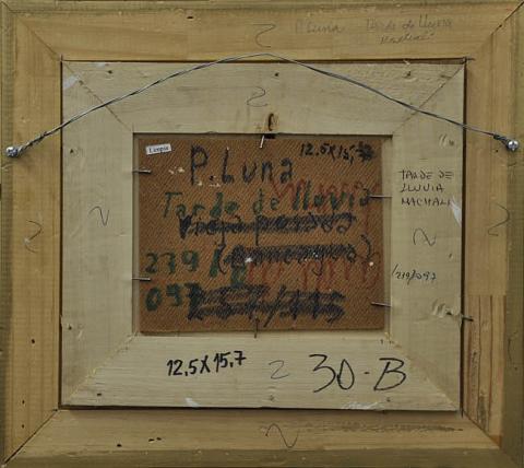 Obra de formato rectangular. Composición en base a paisaje urbano. En primer plano un grupo de casas que abarcan gran parte de la obra. En segundo plano el cielo de color gris.
