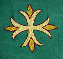 Ornamento litúrgico se utilizó para oficiar misa en Tiempo Ordinario. Es una banda de tela verde ensanchada en los extremos y en cada punta lleva una cruz amarilla terminadas en flor. En el borde presenta una franja realizada con un cordoncillo que dibuja tréboles y curvas. Reverso, esta forrado en tela verde claro.