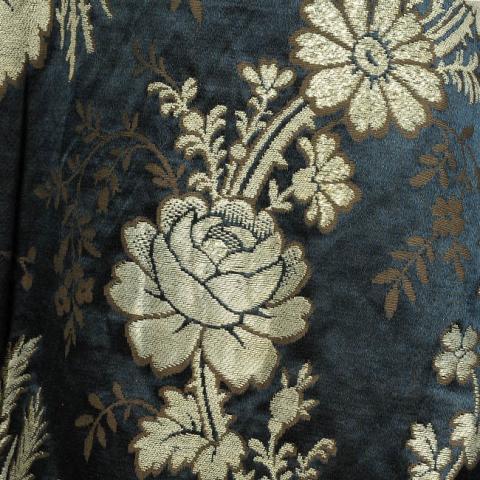 Textil de brocado cosido color negro con bordados en plata e hilo café. Forro textil de color negro, galones plateados. Flecos de hilos metálicos plata. Vestidura litúrgica exterior de forma semicircular larga, unida a la altura del pecho por una banda rectangular. De color negro con decoración plateada. Está compuesta por una capa con decoración en base a guirnaldas de flores y hojas, una cenefa que recorre las dos caídas decorada con guirnaldas de florales bordeadas por unos listones plateados. El capillo de forma semicircular con flecos plateados en los contornos laterales e inferior tiene una aplicación de un motivo floral compuesto por rosas, helechos y espigas de trigo. Usada por los religiosos en ceremonias y procesiones.