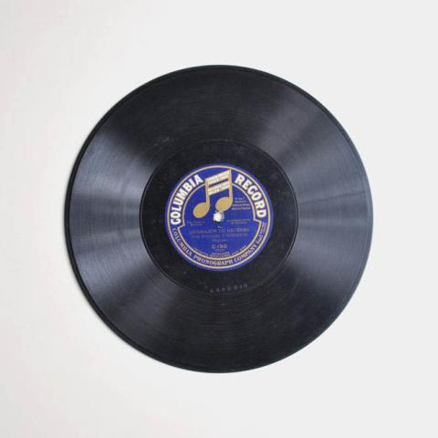 Disco fonográfico Columbia Records con sobre de papel impreso Brunswick Record. Grabado lado 1 con "Las mañanitas alegres", Dúo Tenor Barítono, acompañamientos de guitarra. Por Rosales y Robinson Mexicano. En lado 2 con "Quemazón de mujeres", Dúo Tenor Barítono, acompañamientos de guitarra. Por Rosales y Robinson Mexicano.