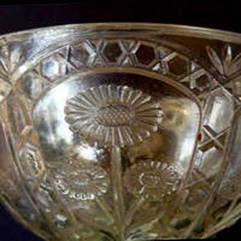 Contenedor con tapa de aspecto transparente; en el extremo superior la tapadera presenta volumen abovedado, con un tomador prominente. El cuenco tiene una amplia abertura, sus paredes convergen en el extremo inferior y forman importante concavidad. Tiene un breve fuste cilíndrico y un pie amplio, circular de reverso plano. Presenta decoración en diseño vegetal con una serie de paneles con diseño de flores.
