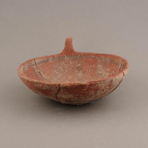Plato ornitomorfo. Vasija simétrica, no restringida, de perfil simple. La superficie interior está pulida y engobada. El borde es directo evertido con labio convexo, cuerpo semiesférico, base plana. En el borde se emplaza una cabeza ornitomorfa modelada, y opuestos a ella, un par de protúberos.