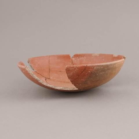 simple. Ambas superficies están pulidas y engobadas rojo. Borde evertido con labio convexo, cuerpo semiesférico, base convexa.
