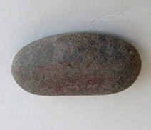 Instrumento utilizado para pulir superficies blandas. Objeto de forma ovalada ligeramente curvada hacia el interior. Superficie alisada de color marrón oscuro con manchas rojas.