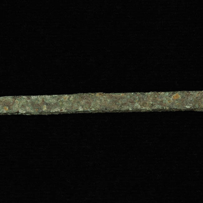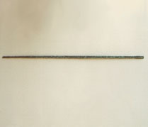 Con dos filos opuestos en los extremos y de sección subrectangular. El más ancho p`resenta un frente convexo, perfil recto y asimétrico. El más angosto es de frente recto irregular. El perfil no es claramente observable