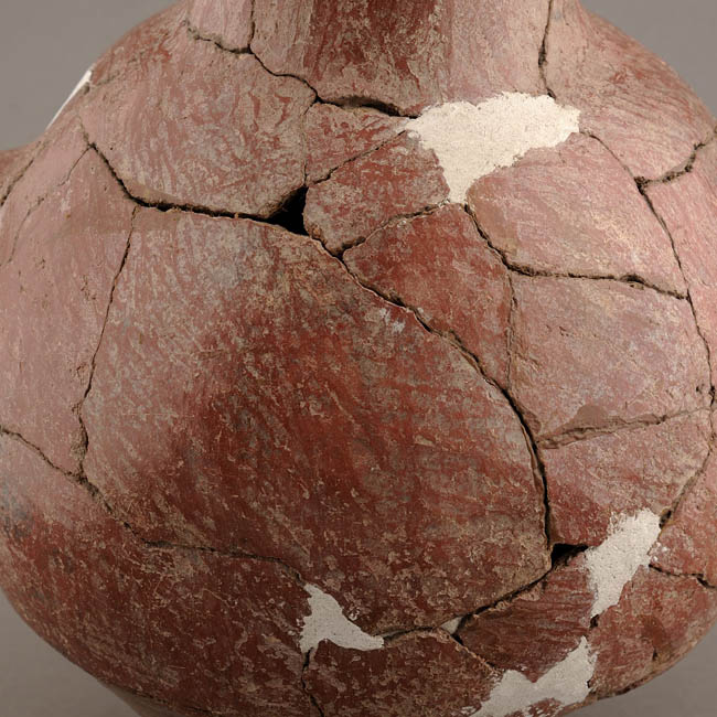Vasija simétrica, restringida independiente (con cuello), contorno complejo. Borde evertido, labio convexo, cuerpo ovoidal cuello hiperboloide, base cónica invertida, asas verticales tipo arco de correa emplazadas cuerpo-cuerpo. La superficie exterior está engobada y pulida, al igual que el interior del borde y cuello. Usado para el almacenaje y transporte de líquidos.