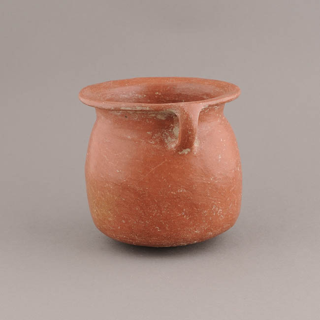 Vasija simétrica, no restringida con cuello, contorno complejo. Superficie exterior pulida y engobada rojo; superficie interior alisada, excepto borde y cuello que presentan engobe. Borde evertido, cuello semihiperboloide, cuerpo subcilíndrico, base subesférica, par de asas verticales en arco de correa emplazadas labio-cuerpo.
