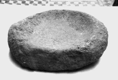 Instrumento de molienda, de forma subcircular. La superficie activa (anverso) presenta una concavidad producto de la acción de molienda.