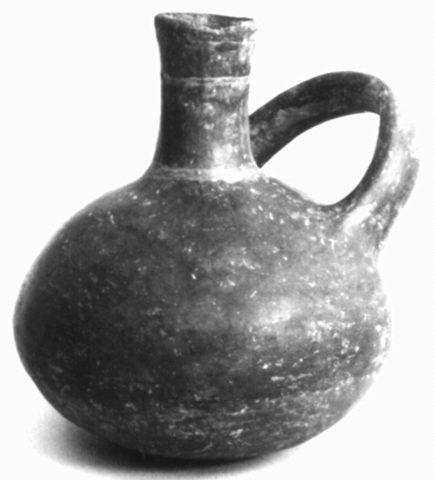 Vasija simétrica, restringida con cuello, de perfil inflectado. El cuerpo es de forma subesférica y el cuello es cilíndrico. El asa está emplazada en el cuerpo y es tipo arco de correa.