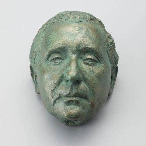 Rostro humano femenino convexo, nariz grande, boca pequeña, ojos pequeños y hundidos, arrugas en el rostro.