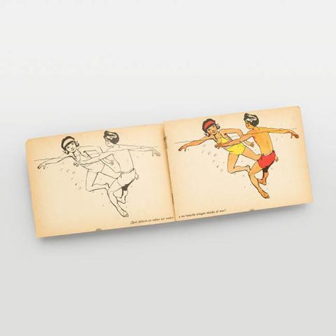 Objeto rectangular, plano. Lámina temática. Son de papel, la portada es en colores, y en su interior se presentan imágenes del tema indicado en cada portada pero sin colores.