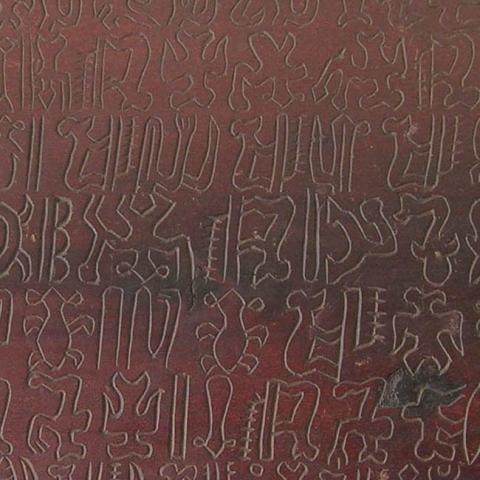 Piza de madera oscura, de forma rectangular con esquinas redondeadas, tallada completamente con motivos figurativos y geométricos, por ambos lados. Es una réplica de tablillas con escritura Rapa Nui.