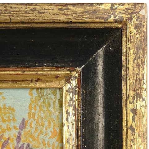 Obra bidimensional en color de formato rectangular. Composición en base a grupo compuesto por cuatro figuras femeninas de pie, dos de ellas de espalda y dos de frente con la cabeza inclinada hacia el costado izquierdo. La figura de la derecha lleva un vestido de color azul con amarillo en la cintura, un pañuelo naranjo cubriendo el cabello, sobre la cabeza lleva un elemento de forma ovalada, al costado izquierdo la figura viste una falda de lineas verticales negras y blancas con una blusa roja, lleva el cabello cubierto con un pañuelo rosa, carga en su mano un balde, a su lado la figura lleva un vestido rosa con naranjo en la cintura y pañuelo verde, la última lleva vestido rojo con cinturón verde y elemento amarillo y pañuelo rojo. En el costado izquierdo de la obra una figura animal de color negro con manchas blancas y cachos y una figura masculina que viste pantalones hasta la rodilla, camisa celeste y pañuelo al cuello rojo.. En la parte posterior de la obra árboles.