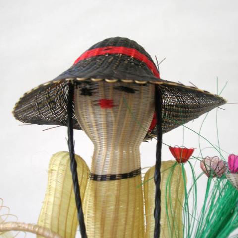 Es una estructura de ixtle sobre la cual pasa el tejido de crin previamente teñido. Los brazos, ramo y sombrilla se tejen aparte y van cosidas a la figura principal.