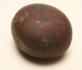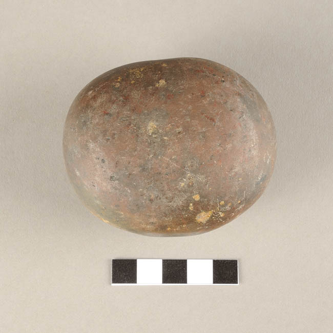 Objeto de uso doméstico. Utilizado para triturar granos y/o semillas. Elaborado en piedra lentiforme redondeada. Superficie lisa sin decoración.