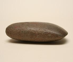 Objeto de uso personal. Considerado un símbolo de poder. Piedra tallada de forma oblonga. Ambos extremos redondeados, uno de ellos afilado a modo de instrumento de corte. Ambas caras curvas. Superficie lisa de color gris sin decoración.