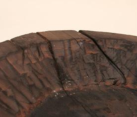 Objeto de uso doméstico. Contenedor elaborado en madera tallada. De forma tronco cónica. Borde evertido plano, boca abierta y base apuntada de terminación plana. Superficie de color café sin decoración.