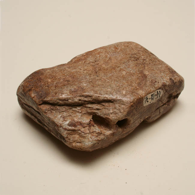 Instrumento sonoro de viento. Elaborado en piedra tallada de forma rectangular. En la parte superior cuatro orificios. Una de sus caras irregulares. Superficie lisa color café sin decoración.
