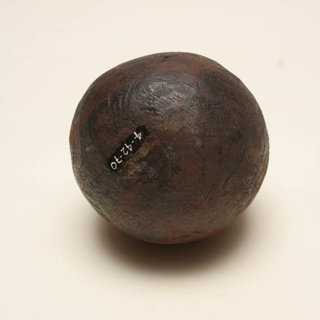 Objeto de uso recreativo. Madera tallada de forma esférica. Superficie de color café alisada sin decoración.
