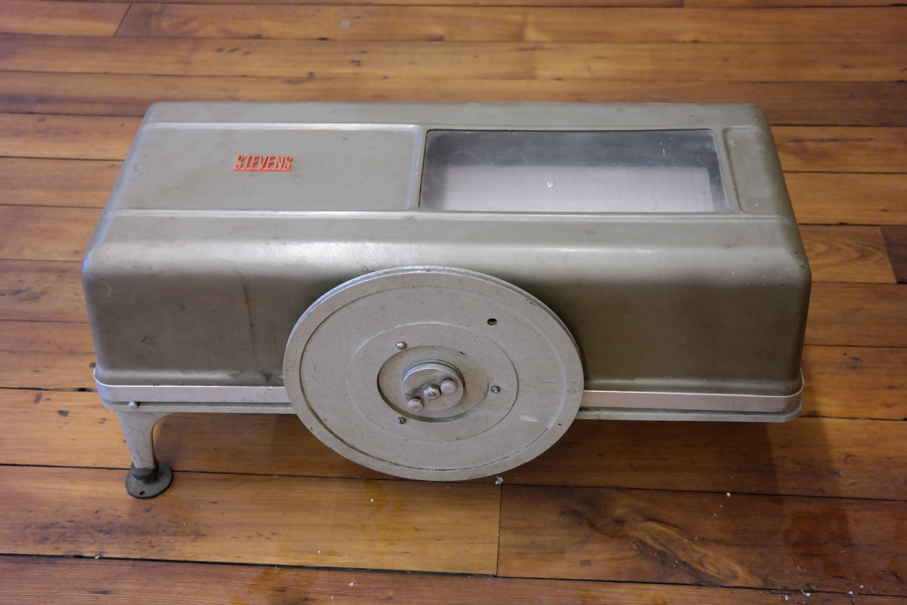 Instrumento para el registro niveles de líquidos por un sensor. De cuerpo rectangular con vidrio transparente, en el interior posee un mecanismo que registra mediante una aguja y tinta sobre un rollo de papel.