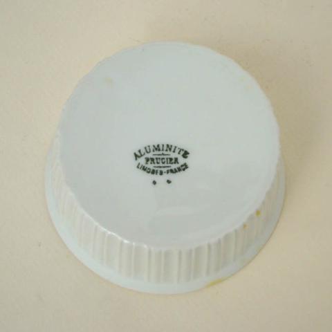 Recipiente cerámico de forma cilíndrica, de color blanco esmaltado, presenta paredes rectas con estrías verticales en el exterior y borde ligeramente ensanchado. Su interior es liso.