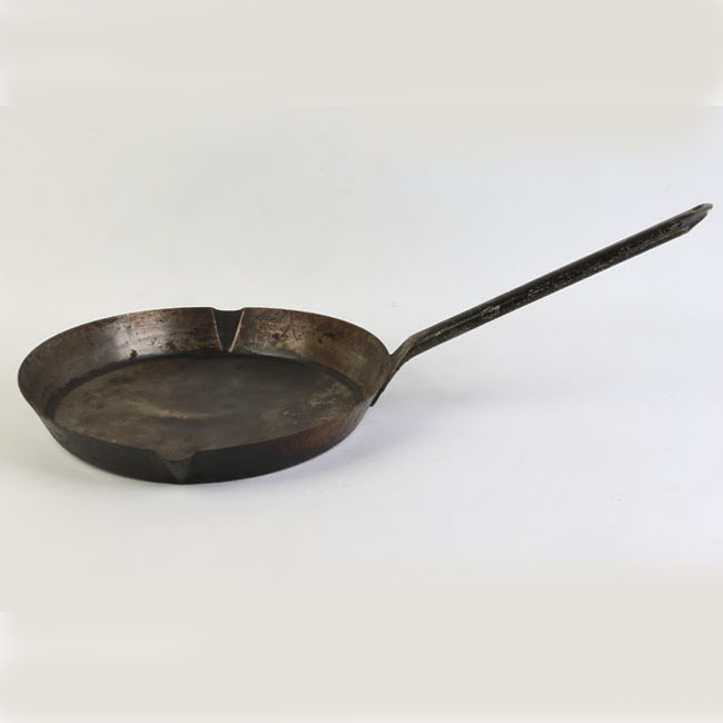 Contenedor se uso doméstico usado para cocinar. Objeto compuesto por un cuerpo metálico cilíndrico regular cóncavo de base plana y boca ancha. Tiene un mango que nace desde la pared exterior.