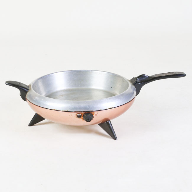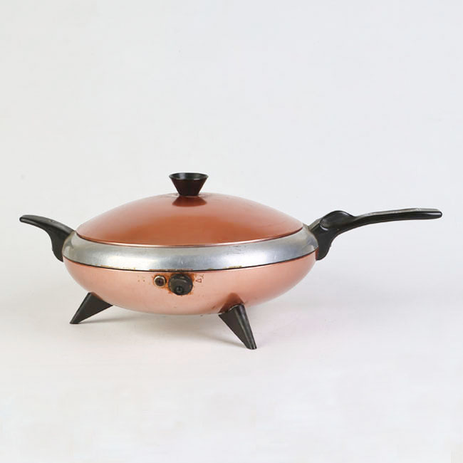 Contenedor se uso doméstico usado para cocinar. Objeto compuesto por un cuerpo metálico circular cóncavo de base plana y boca ancha. Posee una tapa en la parte superior con un tomador en el exterior, ubicado al centro. Tiene un mango largo que nace desde la pared exterior, de las mismas paredes pero en el lado opuesto tiene dos mangos mas cortos. En la base tiene tres soportes.