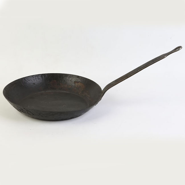 Contenedor se uso doméstico usado para cocinar. Objeto compuesto por un cuerpo metálico circular cóncavo de base plana y boca ancha. Tiene un mango que nace desde la pared exterior.