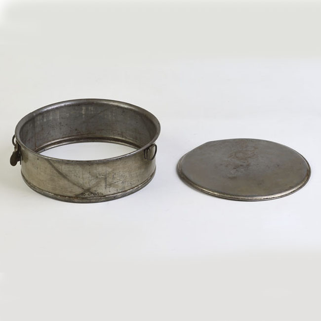 Molde de cocina circular y metálico, presenta paredes rectas, que se elevan desde una base plana, formando un contorno ajustable, la superficie interior es lisa.
