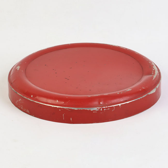 Contenedor metálico, de uso domestico, con cuerpo cilíndrico, cóncavo y de base plana, desde la base se levantan paredes lisas que crean un contorno. en la parte superior posee una tapadera circular metálica
