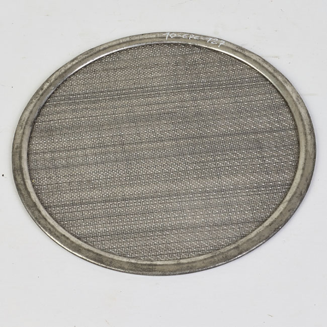 Objeto de uso domestico. Circular metálico, con borde brillante y rígido; al centro una malla fina de hilos entrecruzados formando un patrón regular.