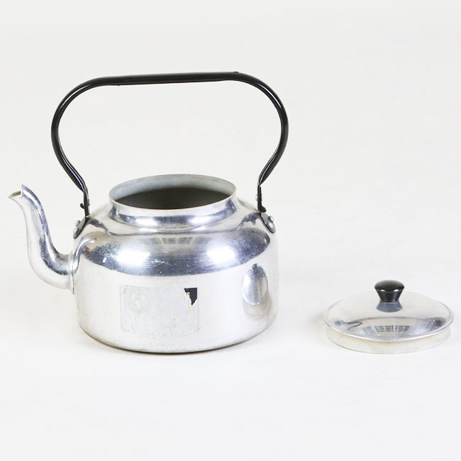 Objeto de uso doméstico. Recipiente metálico de cuerpo cilíndrico que se estrecha en su parte superior donde posee una abertura. En uno de sus lados tiene un pico largo y curvado. En la parte superior posee asa horizontal, plana y movible, mientras que la base es plana.